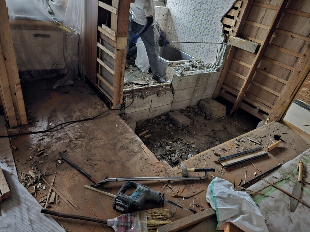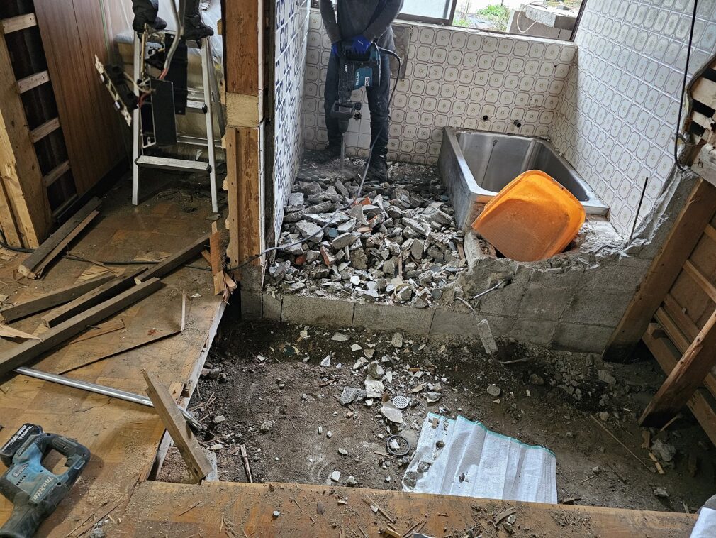 ブロックの積み重ね。ユニットバスにされる理由が解体して
