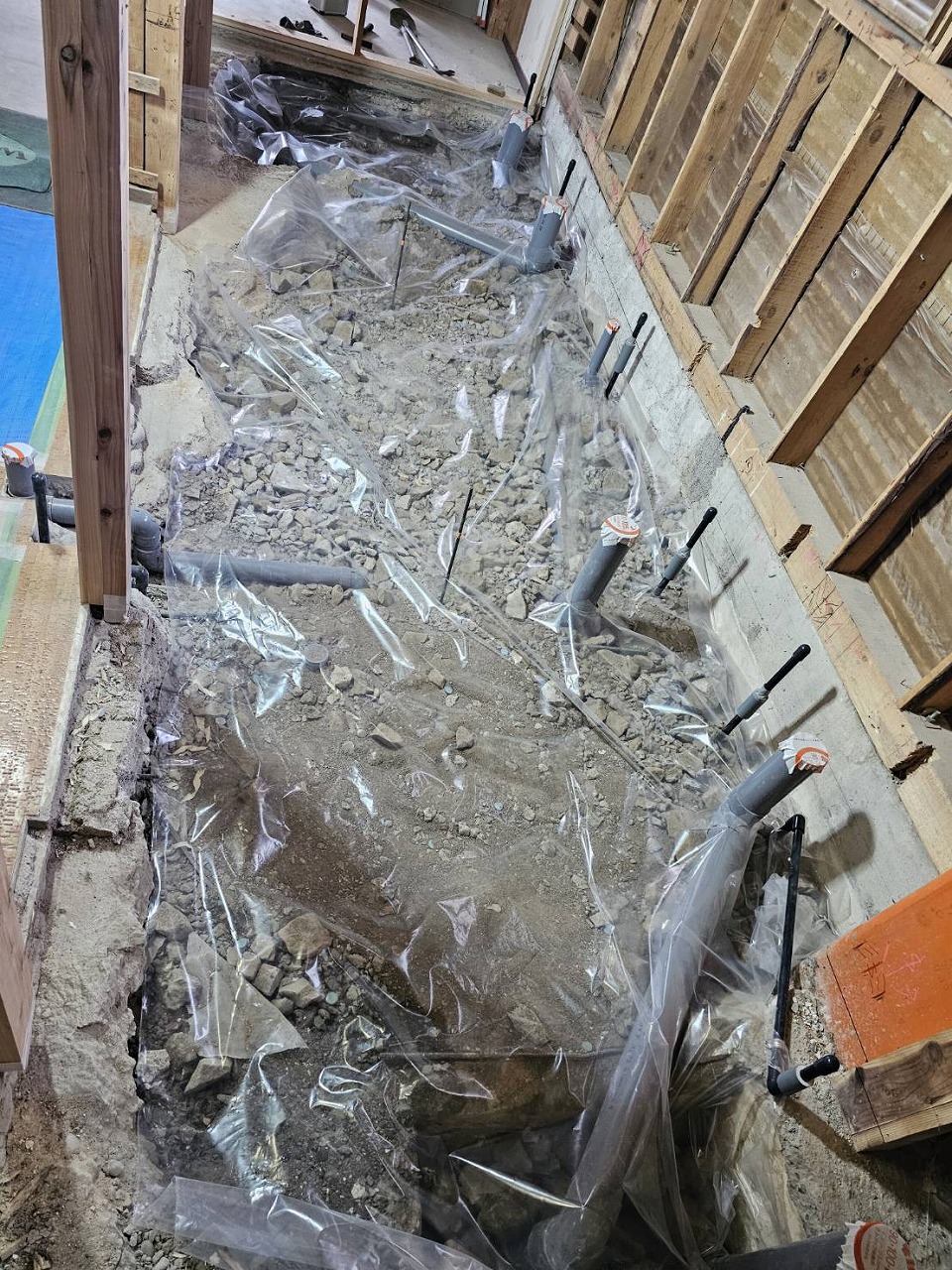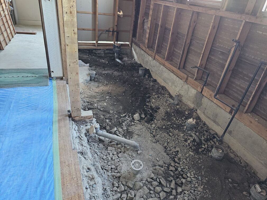 某集会場リフォーム工事の現場はトイレ改修工事の配管工事まで終わり、