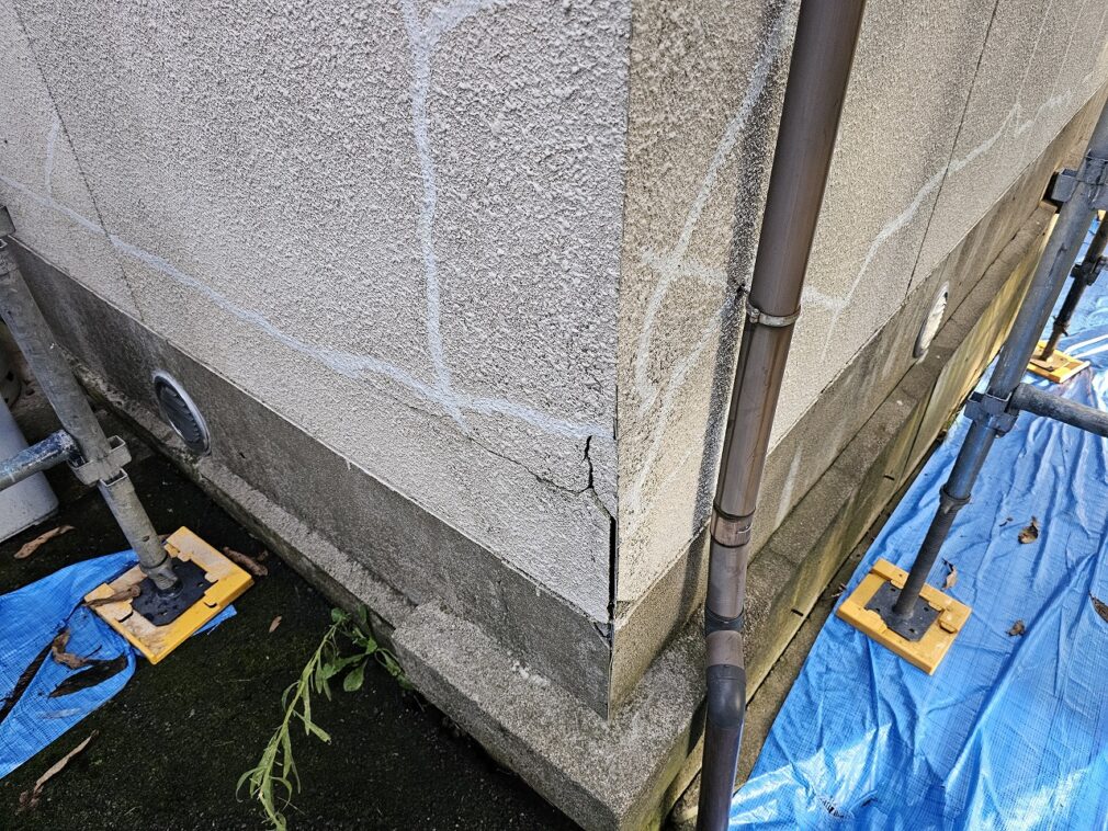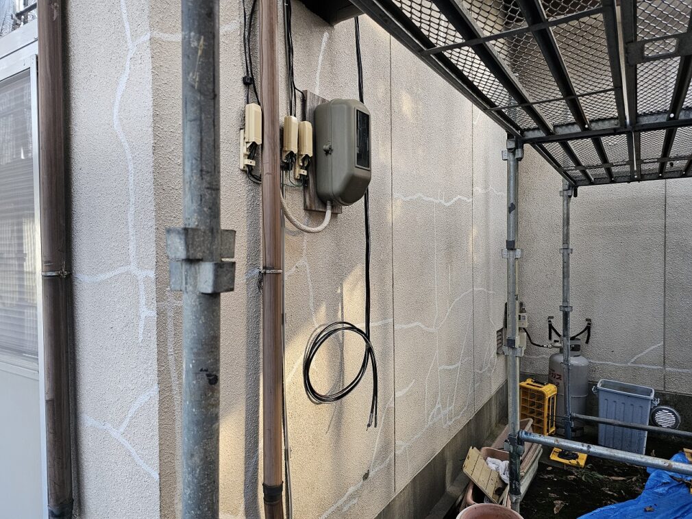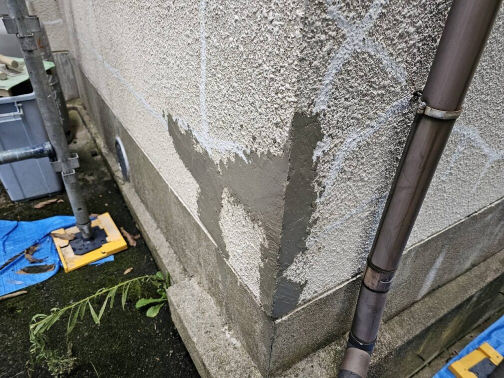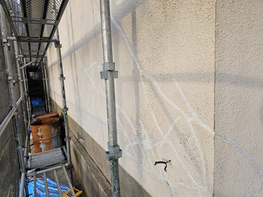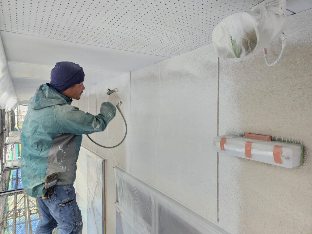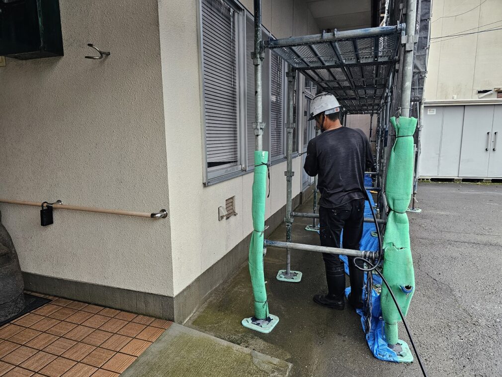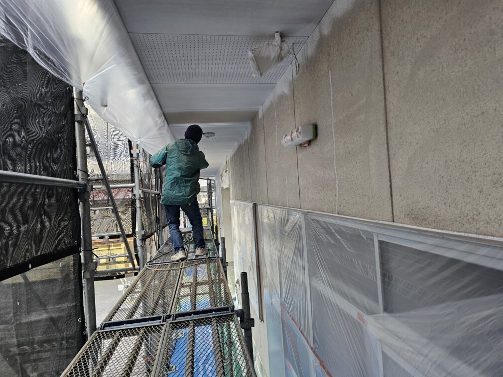 某集会場リフォーム工事の現場では外回りの塗装工事に入ってた。