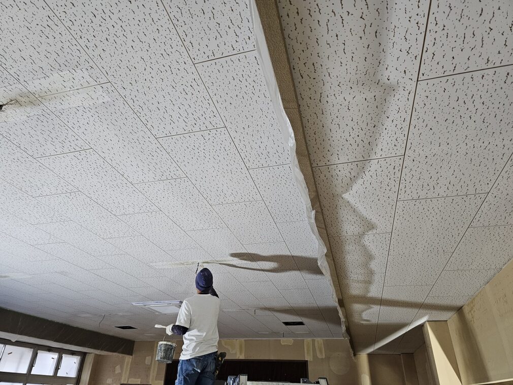 雨が降って来る前に屋外の塗装工事がほぼ完了して良かった(^^