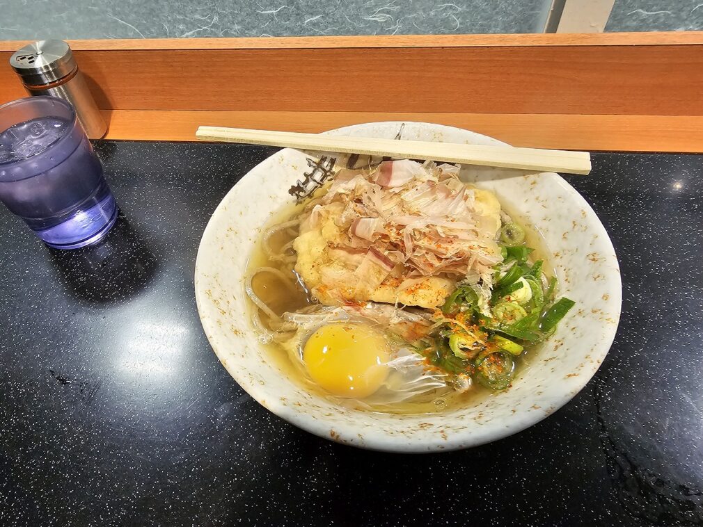 スタートはやっぱり駅の立ち食い蕎麦「両入り」からスタート