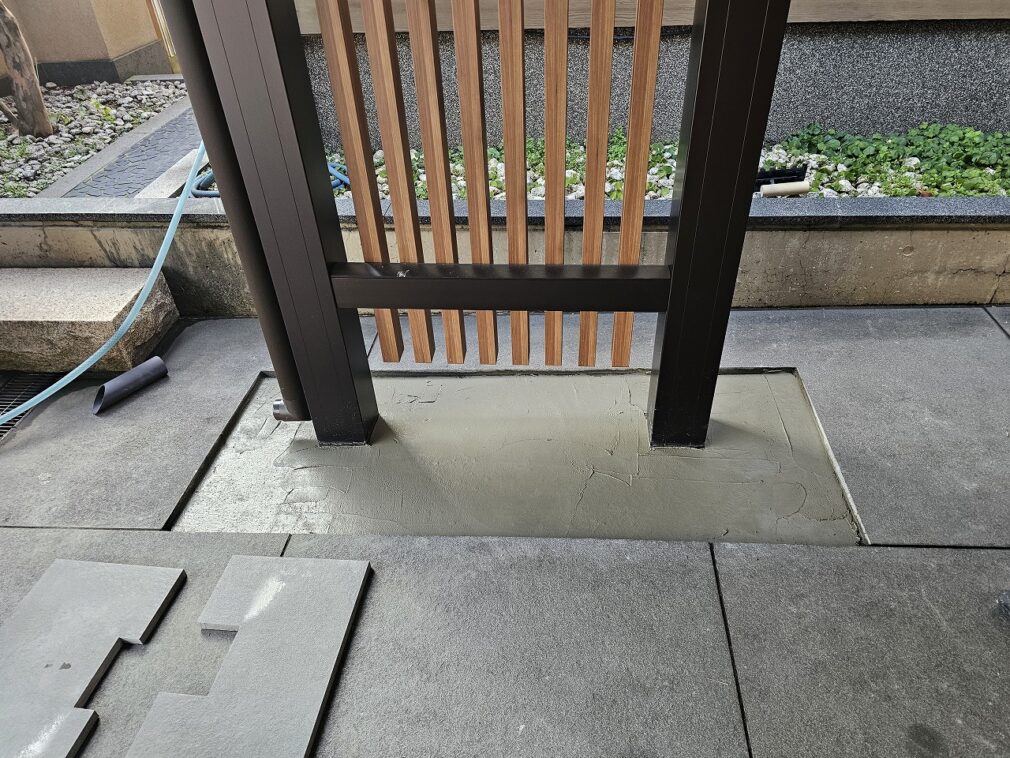 昨年末、カーポートの建て方だけ終わってて脚部の仕上げは年明けてから。