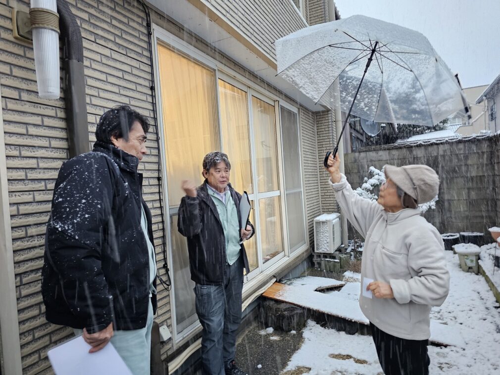 某集会場の雨樋破損の現調、Mさんちの外壁リフォームの下見、