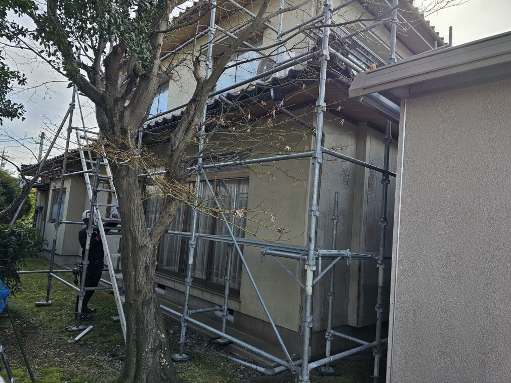 Mさんちの外壁工事が始まった。